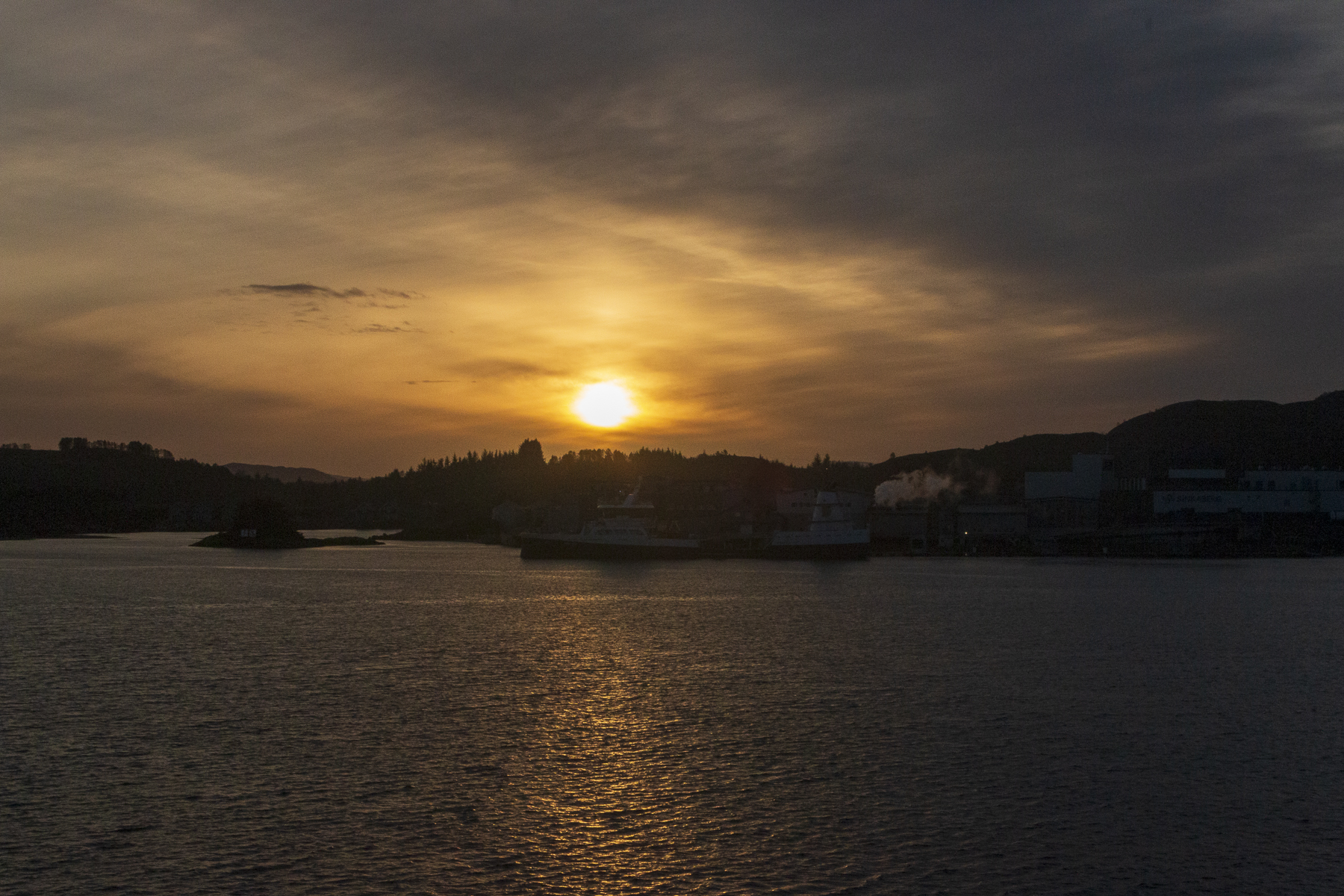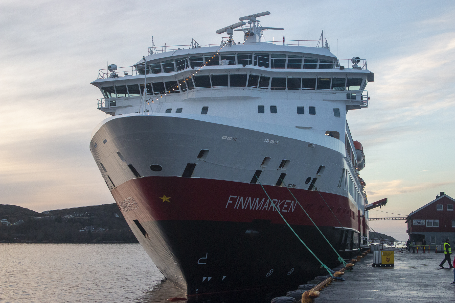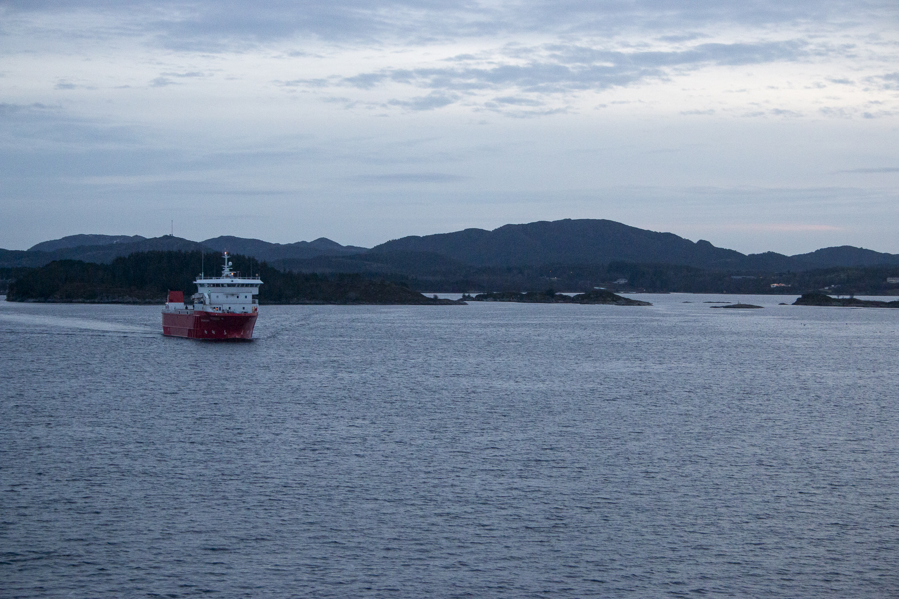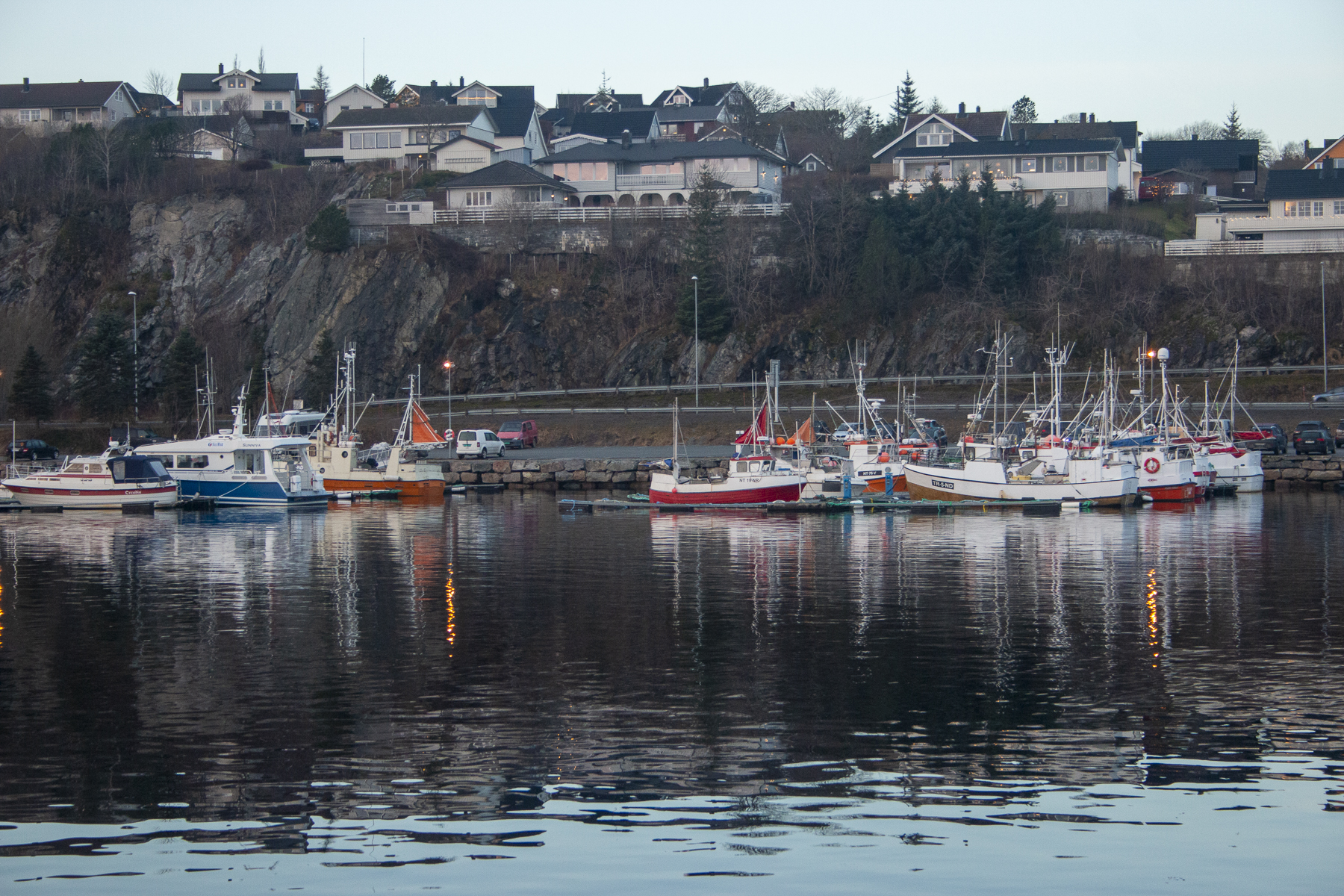 Heute morgen war ich schon vor dem Wecker wach, was dazu führte, dass wir schon vor dem Anlegen in Rørvik beim Frühstück saßen. Draußen war es um neun Uhr immer noch dunkel. Man merkt deutlich, dass wir weit im Norden sind. Das Anlegemanöver fand während des Frühstücks statt und am Horizont hinter den Bergen war erkennbar, dass die Sonne aufzugehen gedachte.