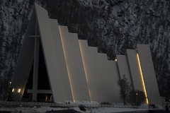 Hier gibt es nicht viel zu sagen. Sie liegt unübersehbar auf einem kleinen Plateau auf dem Festland und wird schon weitem beim Einlaufen in die Bucht von Tromsø erkannt. Das liegt an ihrer markanten Architektur und Lichtgebung. Von Innen finde ich sie eher enttäuschend. Aber urteilt selbst.