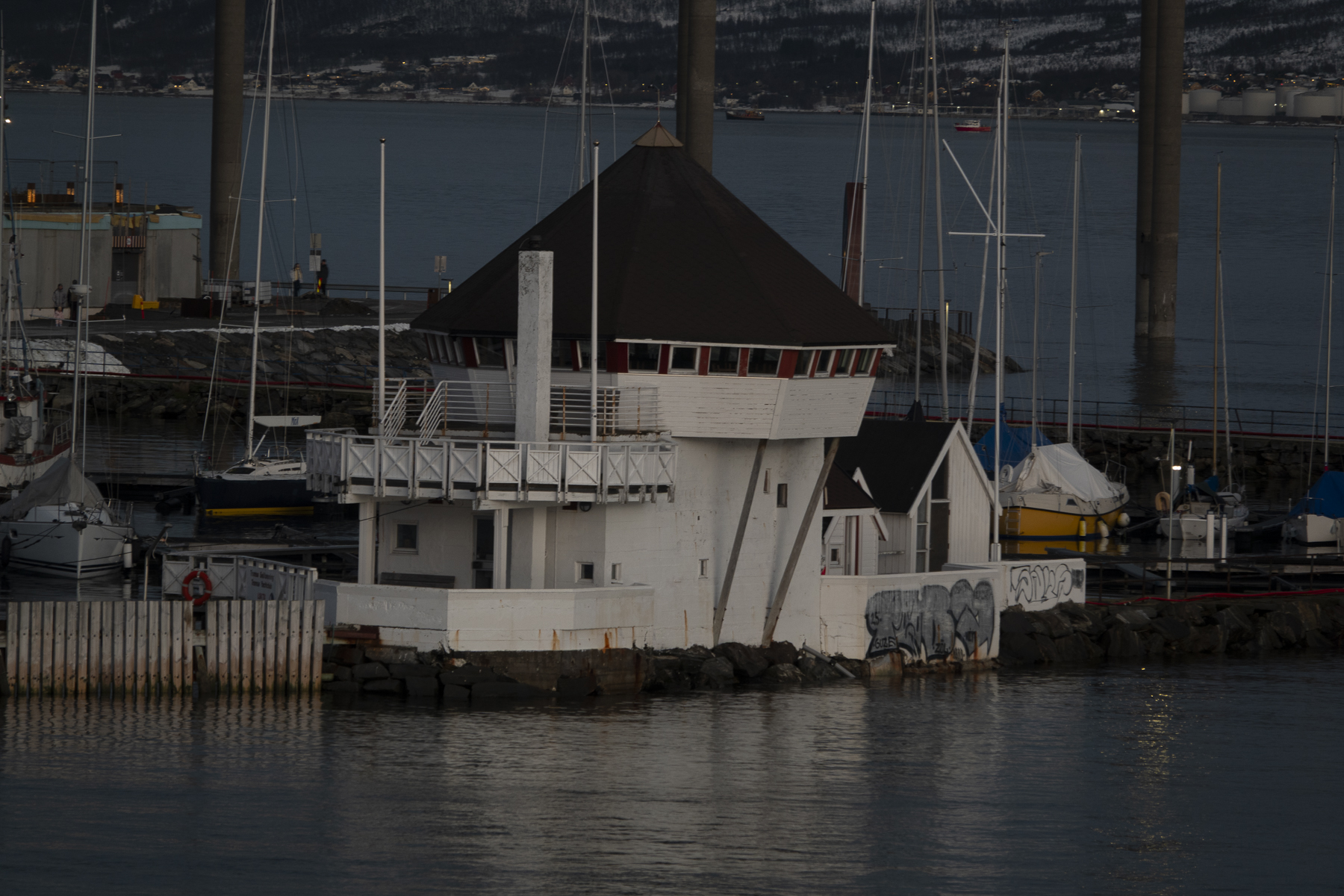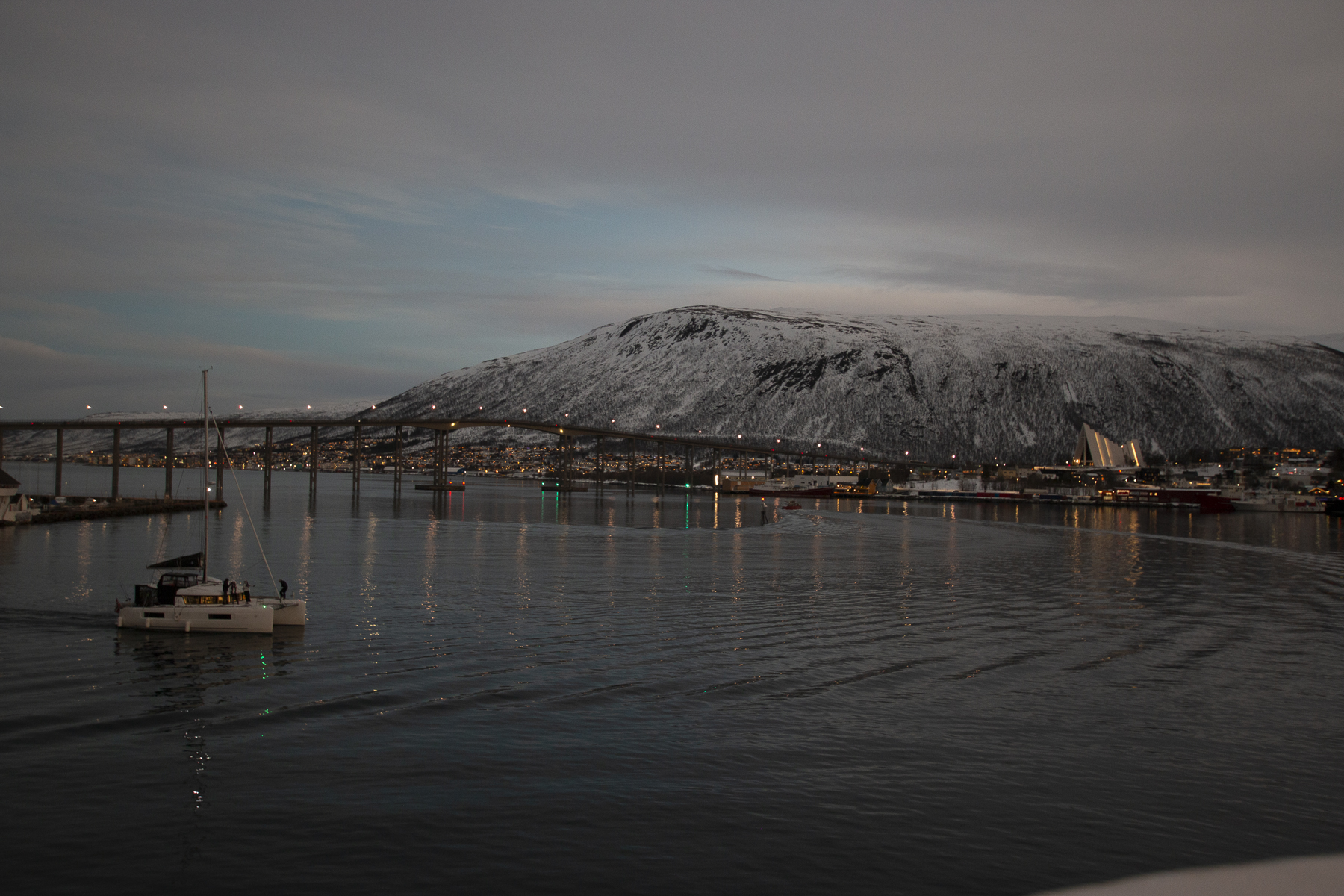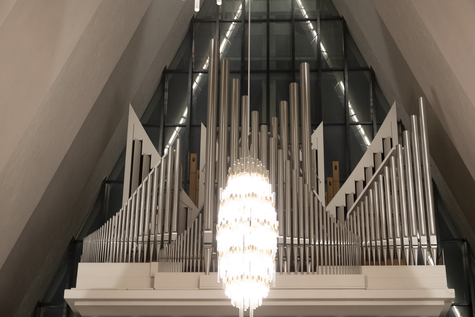 Hier gibt es nicht viel zu sagen. Sie liegt unübersehbar auf einem kleinen Plateau auf dem Festland und wird schon weitem beim Einlaufen in die Bucht von Tromsø erkannt. Das liegt an ihrer markanten Architektur und Lichtgebung. Von Innen finde ich sie eher enttäuschend. Aber urteilt selbst.