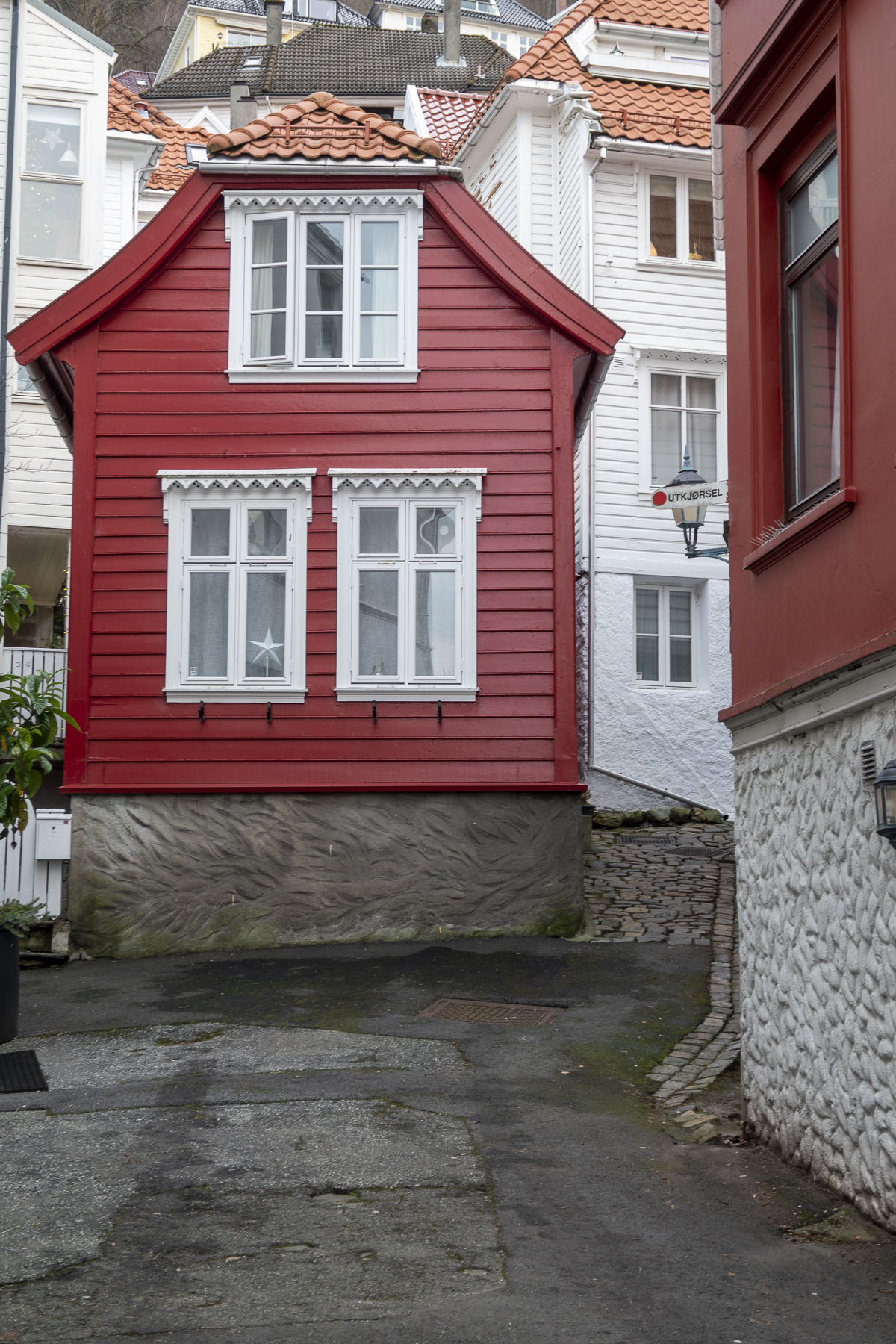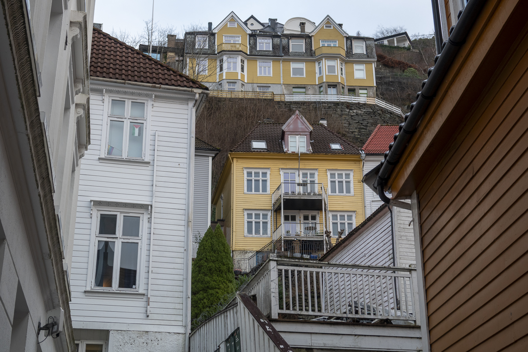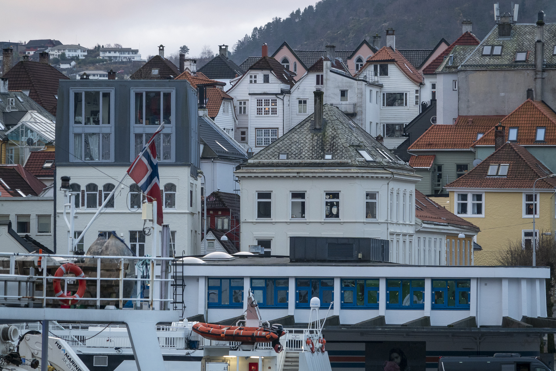 Noch eine Kirche und noch ein paar Denkmäler später war die Führung endlich zu Ende. Nach gut zweieinhalb Stunden war mir kalt, weil wir mehr gestanden haben als dass wir in Bewegung waren. Ich wollte nur noch zurück auf’s Schiff. Die Fahrt mit der Standseilbahn auf den Hausberg habe ich mir gespart. Schöne Motive wären erst entstanden, wenn die Lichter in und an den Häusern eingeschaltet würden. Dafür war es aber noch zu früh und zu hell. Eine spätere Bergfahrt ließ sich nicht mit der Abfahrtszeit unseres Schiffes vereinbaren. Ich wollte schließlich nicht allein in Bergen zurückbleiben. Dafür ist es mir hier nicht schön genug. Dann doch lieber in Tromsø oder noch weiter nördlich.